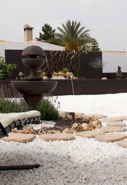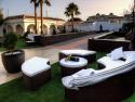 Spectacular Japanese Zen garden style with several distinct areas : arbor, Chillout and BBQ area with tap beer and bar design with backlit methacrylate. Wicker furniture resin. Heated pool with night lighting . Maintained at 32º all year using heat pump .